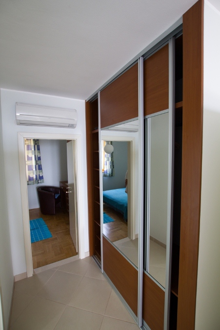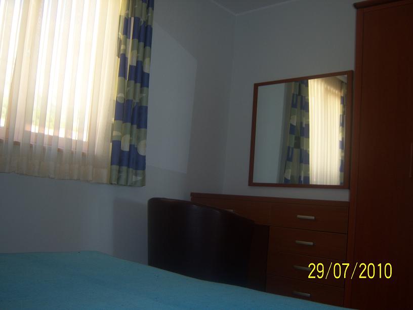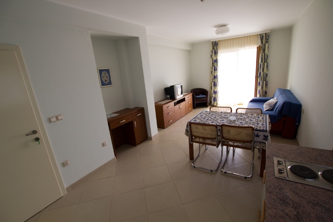 One double bedroom, bathroom/WC, kitchen + dining area + living area (all one space); one couch in living area (extra bed), SAT TV, air conditioning, balcony with marvellous view at the seaside, islands and beaches.
